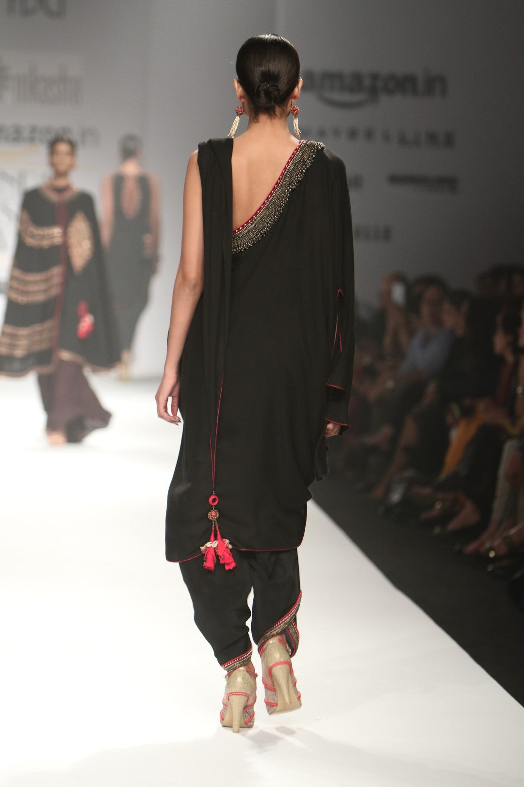 Draped assymetric khadi tunic with crepe dhoti pants.