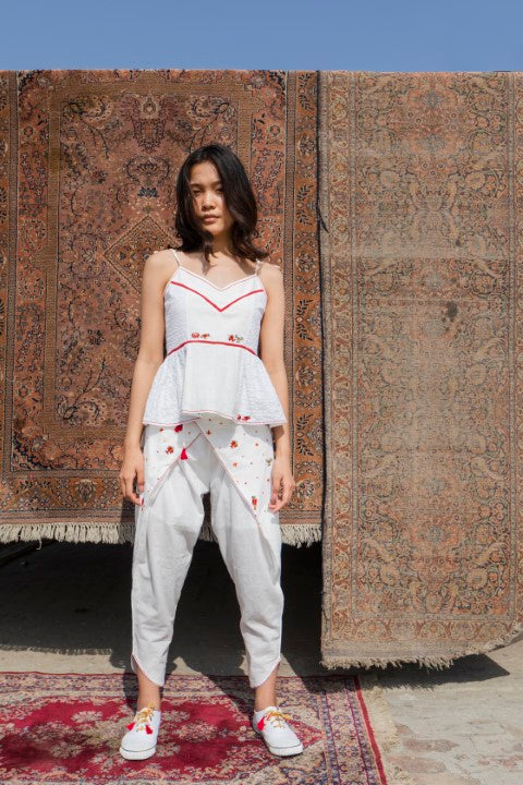 Hand Woven Cotton Emb. Tie-up Cami Top with, hand Stitches And Tassels Details. Azo Free
